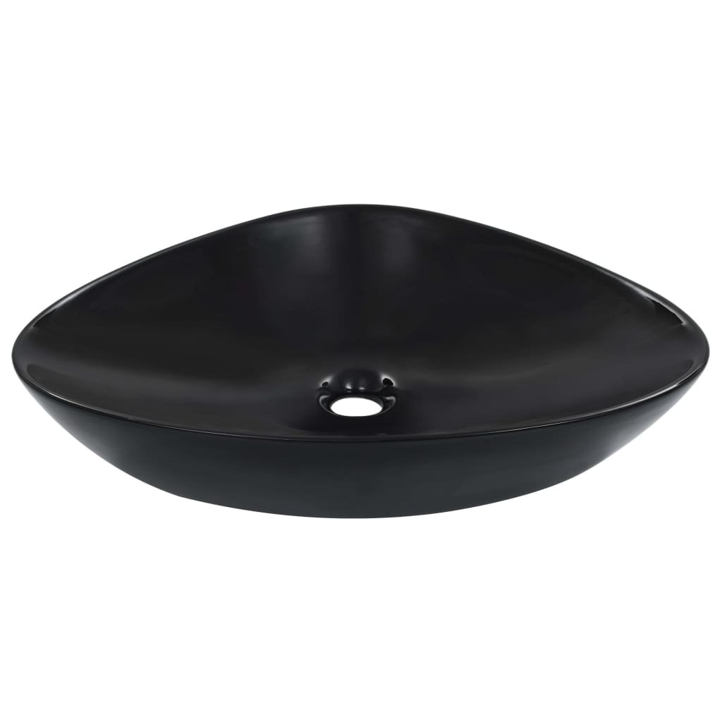 Lavabo lave-mains vasque à poser monter salle de bain intérieur salle d’eau cabine de toilette maison 58,5 x 39 cm céramique noir 02_0002611