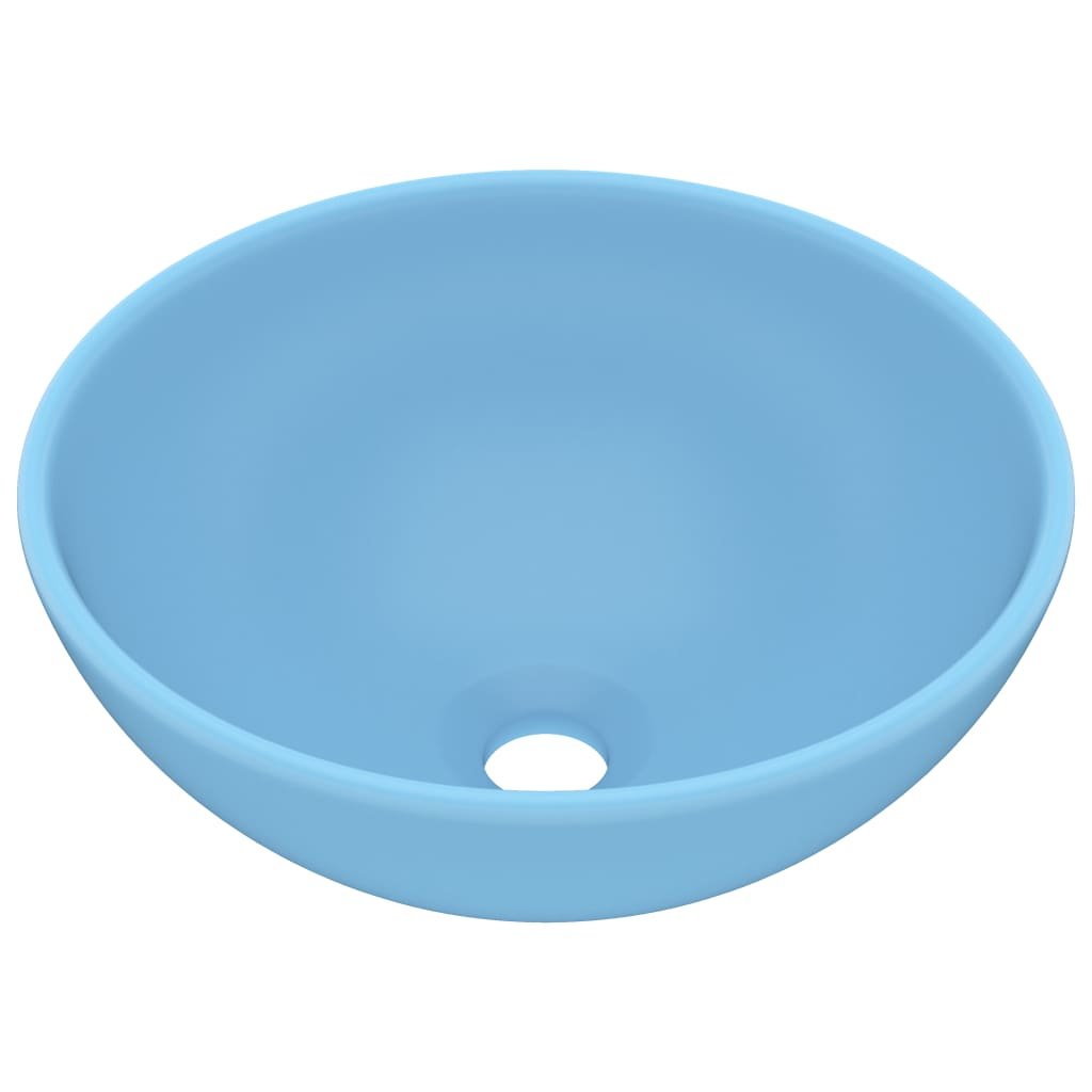 Lavabo rond de luxe de salle de bain vasque à poser de toilette lave-mains salle cosmétique intérieur 32,5 x 14 cm céramique bleu clair mat 02_0002709