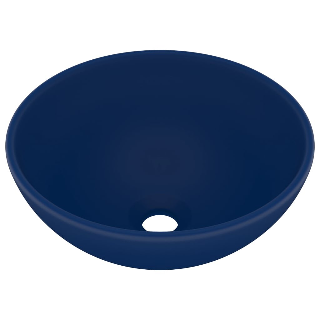 Lavabo rond de luxe de salle de bain vasque à poser de toilette lave-mains salle cosmétique intérieur 32,5 x 14 cm céramique bleu foncé mat 02_0002710