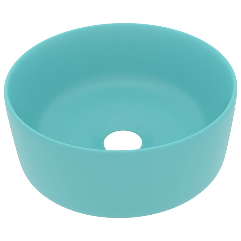 Lavabo rond de luxe vasque à poser de toilette lave-mains de salle de bain vestiaire cuisine maison intérieur 40 x 15 cm céramique vert clair mat 02_0002755