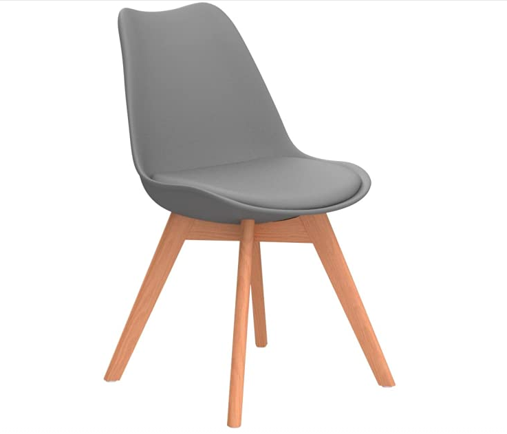 Style scandinave: pieds en bois de hêtre et siège en forme de tulipe avec coussin de 5 cm d’épaisseur