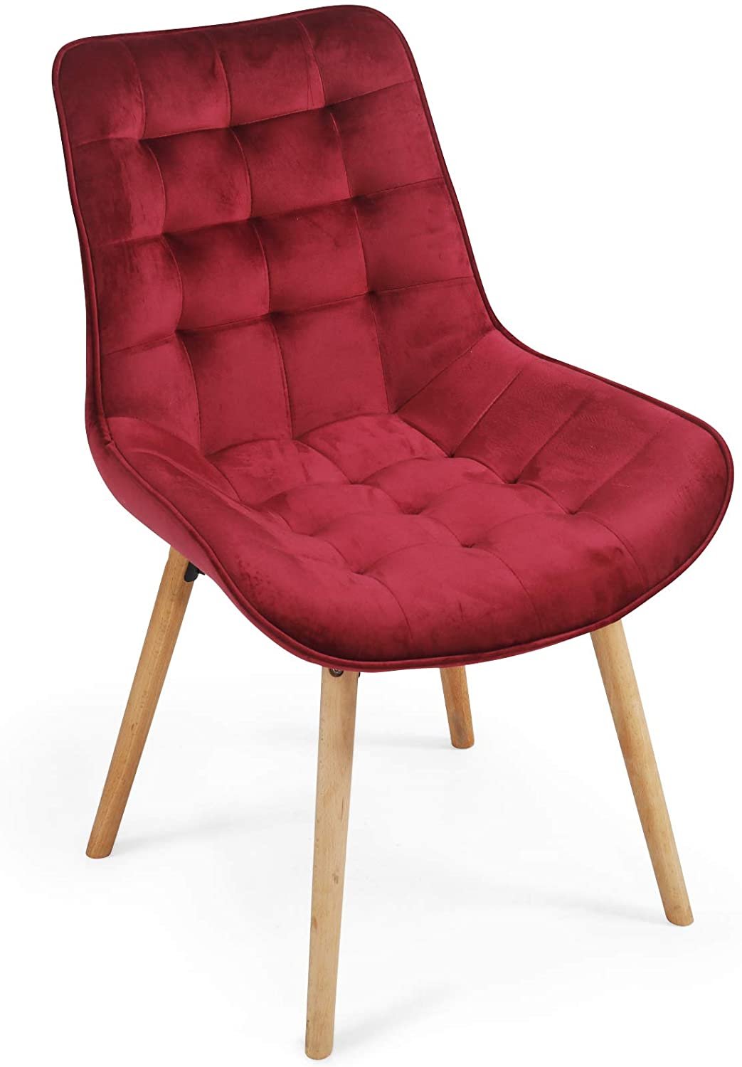 Lot de 6 chaises de salon salle à manger pied en bois et velours rouge foncé 01_0000559