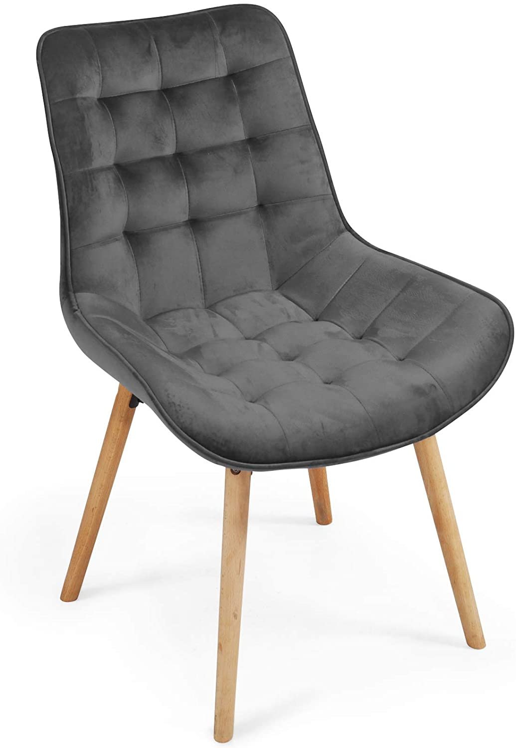 Lot de 8 chaises de salon salle à manger pied en bois et velours gris foncé 01_0000737