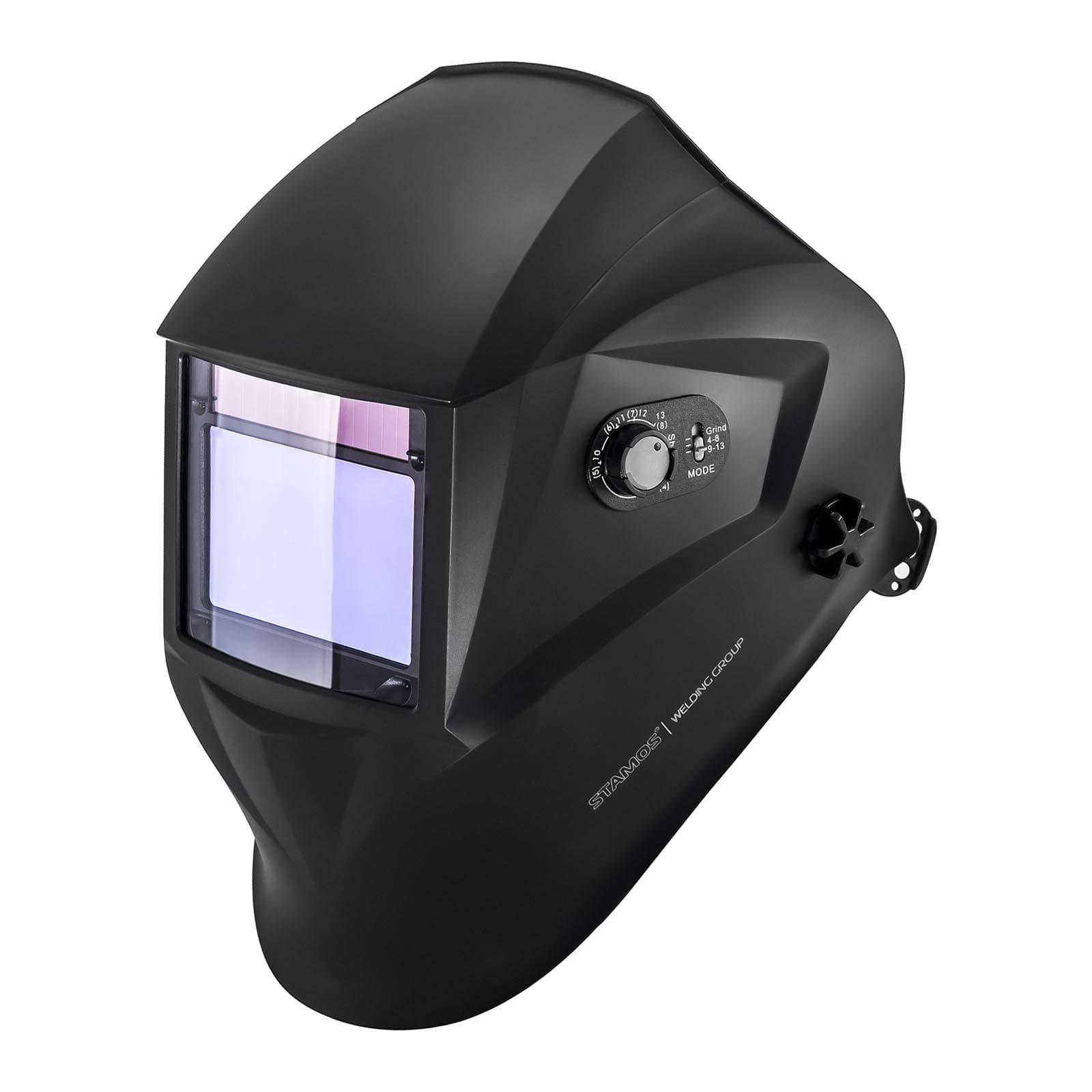 Le masque de soudure octroie une protection flexible contre la luminosité de 4 – 8 DIN ou de 9 – 13 DIN sur une large bande d’une dimension de 100 x 65 mm.