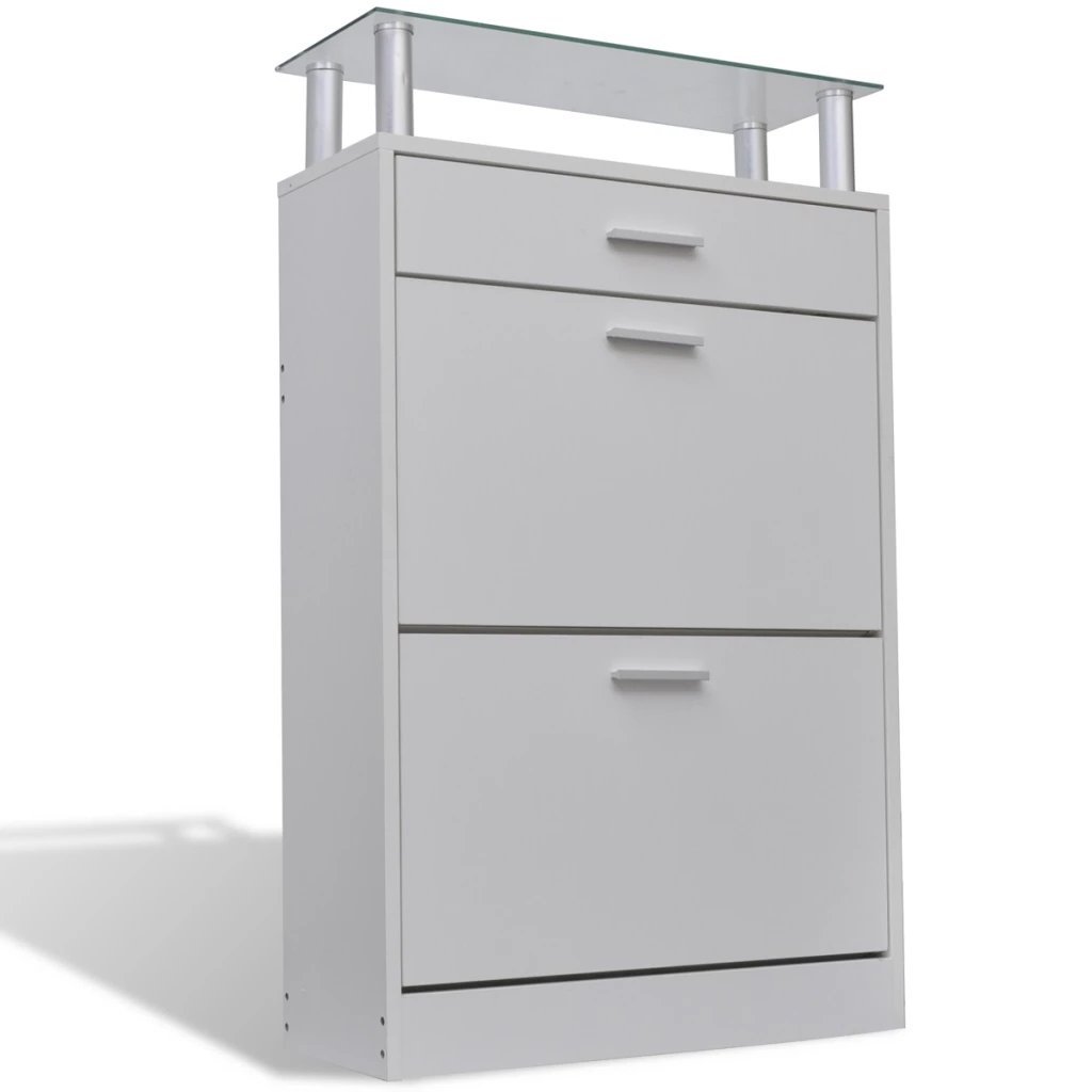 Ce meuble à chaussures avec 1 tiroir, 1 plateau en verre supérieur et 2 compartiments, d’un design simple et élégant, est un bon choix pour accueillir vos chaussures.