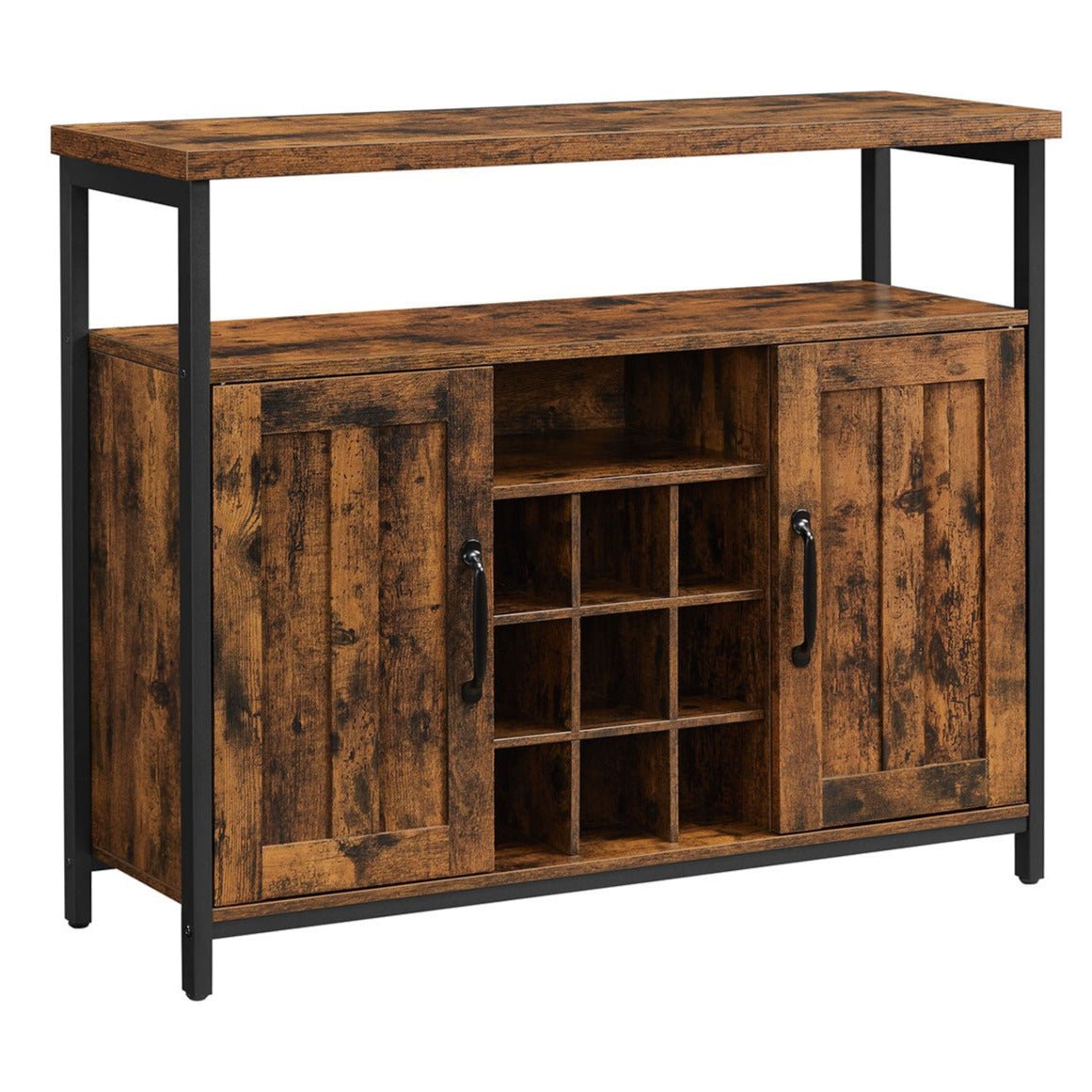 Meuble de rangement buffet avec porte-bouteilles placard 2 portes pour salle à manger salon cuisine 100 x 35 x 81,4 cm style industriel marron rustique et noir 12_0002977