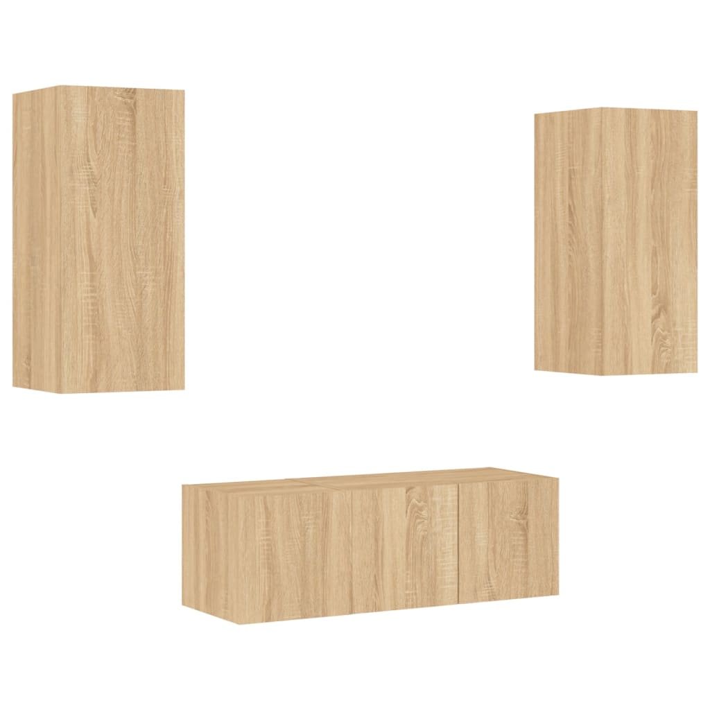 Meubles TV multimédia étagère télévision buffet téléviseur salle à manger salon chambre avec LED 4 pièces chêne sonoma bois d’ingénierie brun 02_0029370