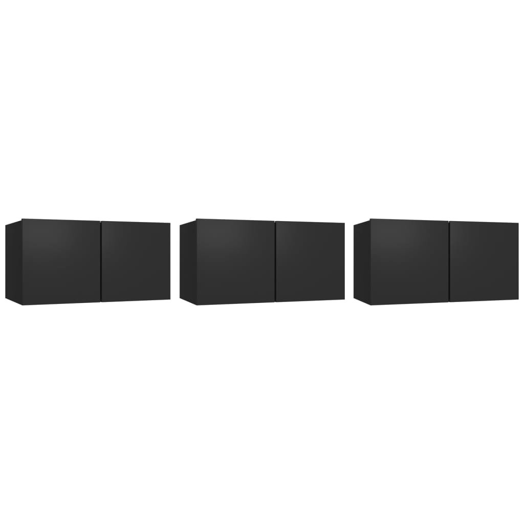 Meubles TV multimédia étagère télévision buffet téléviseur salle à manger salon chambre suspendus 3 pièces 60 x 30 x 30 cm noir 02_0029192