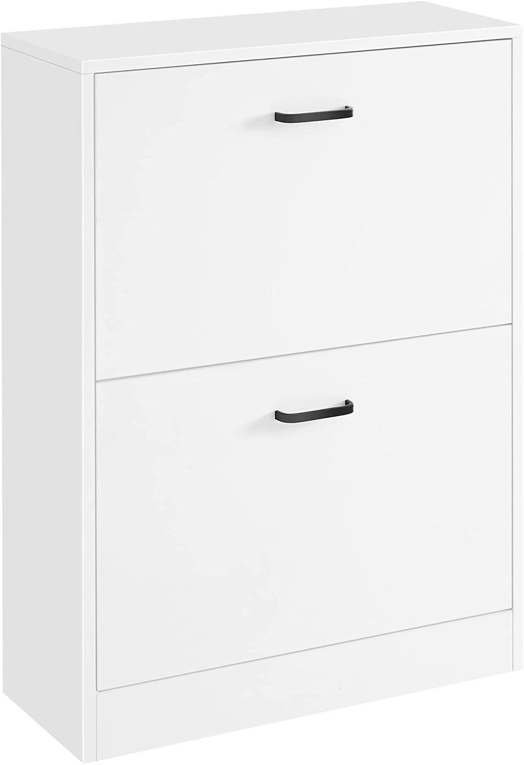Mmeuble chaussure à 2 abattants meuble de rangement à 2 niveaux étagère chaussure porte-chaussures pour petite entrée salon chambre 60 x 24 x 80 cm blanc 12_0002604