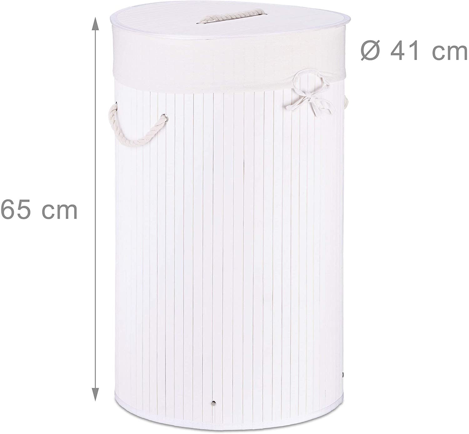 Panier corbeille à linge pliable pliant avec sac coton 80 litres bambou rond blanc 13_0001906_3