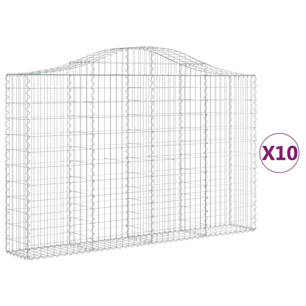 Paniers à gabions clôture cage mur de soutènement arqués 10 pcs 200 x 30 x 120/140 cm fer galvanisé Argent 02_0040222