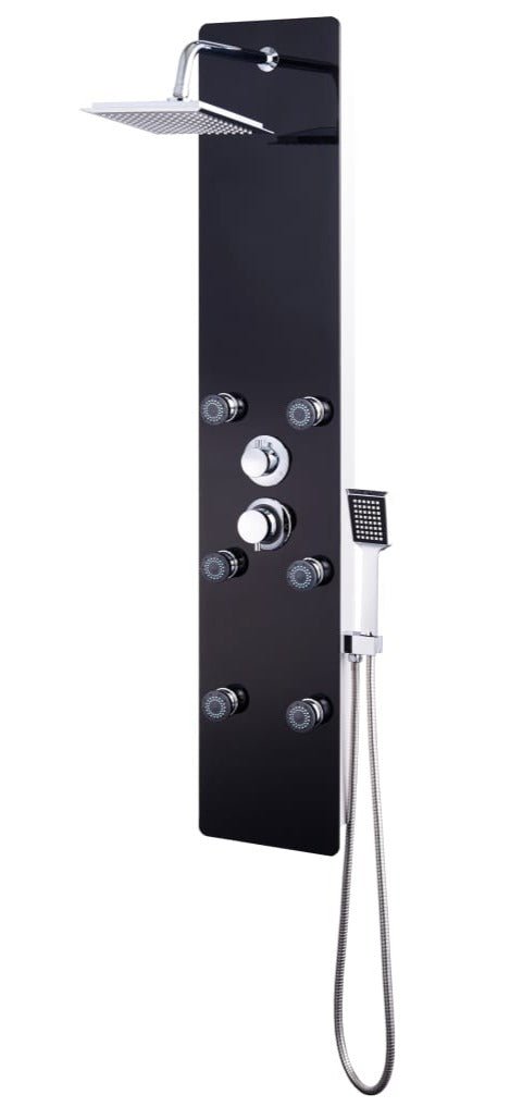 Panneau de douche pomme de douche robinet verre acier inoxydable 130 cm noir 02_0003435