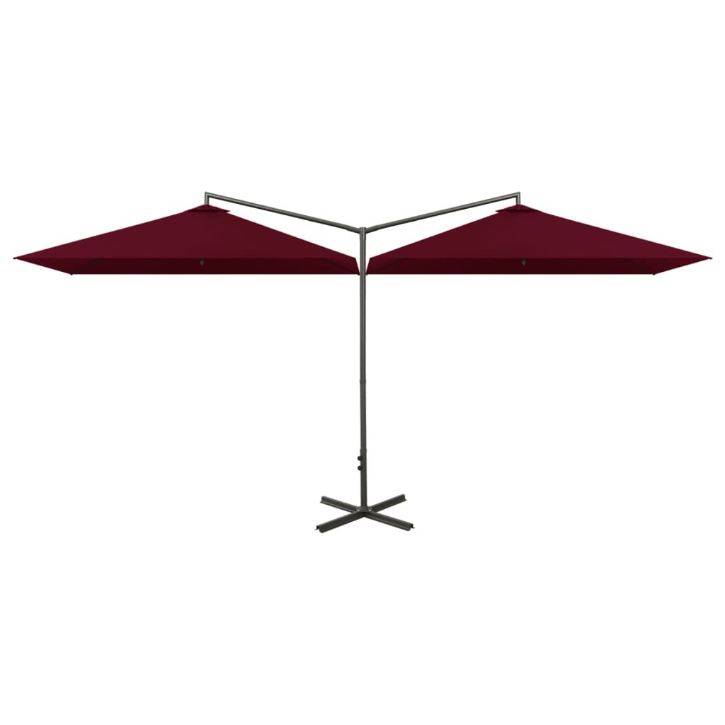 Parasol double avec mât en acier rouge bordeaux 600 x 300 cm 02_0008430