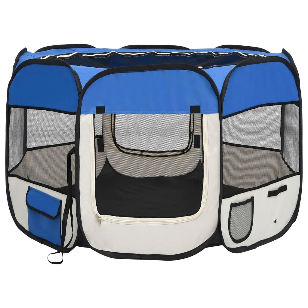 Parc pour chiens pliable avec sac de transport bleu 90 x 90 x 58 cm 02_0001733