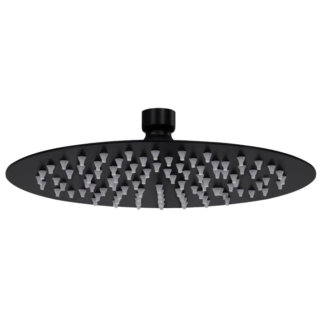 Pomme de douche pluie pulvérisateur pommeau de douche tête de douchette accessoire de salle de bain acier inoxydable 20 cm ronde noir 02_0002072