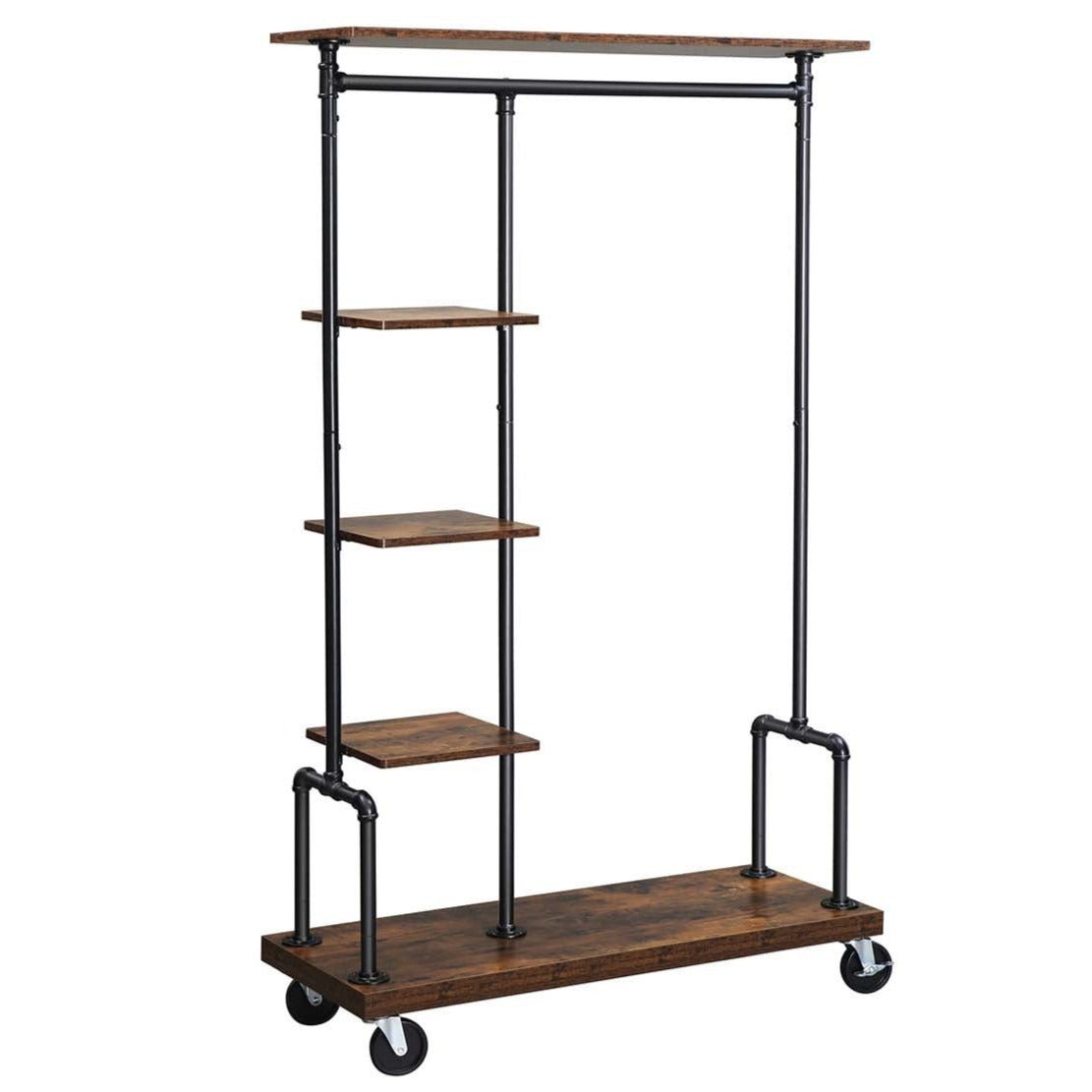 Portant à vêtements mobile vestiaire sur roulettes meuble d’entrée portant à vêtements à 5 niveaux structure métallique 174,5 cm marron rustique 12_0003089