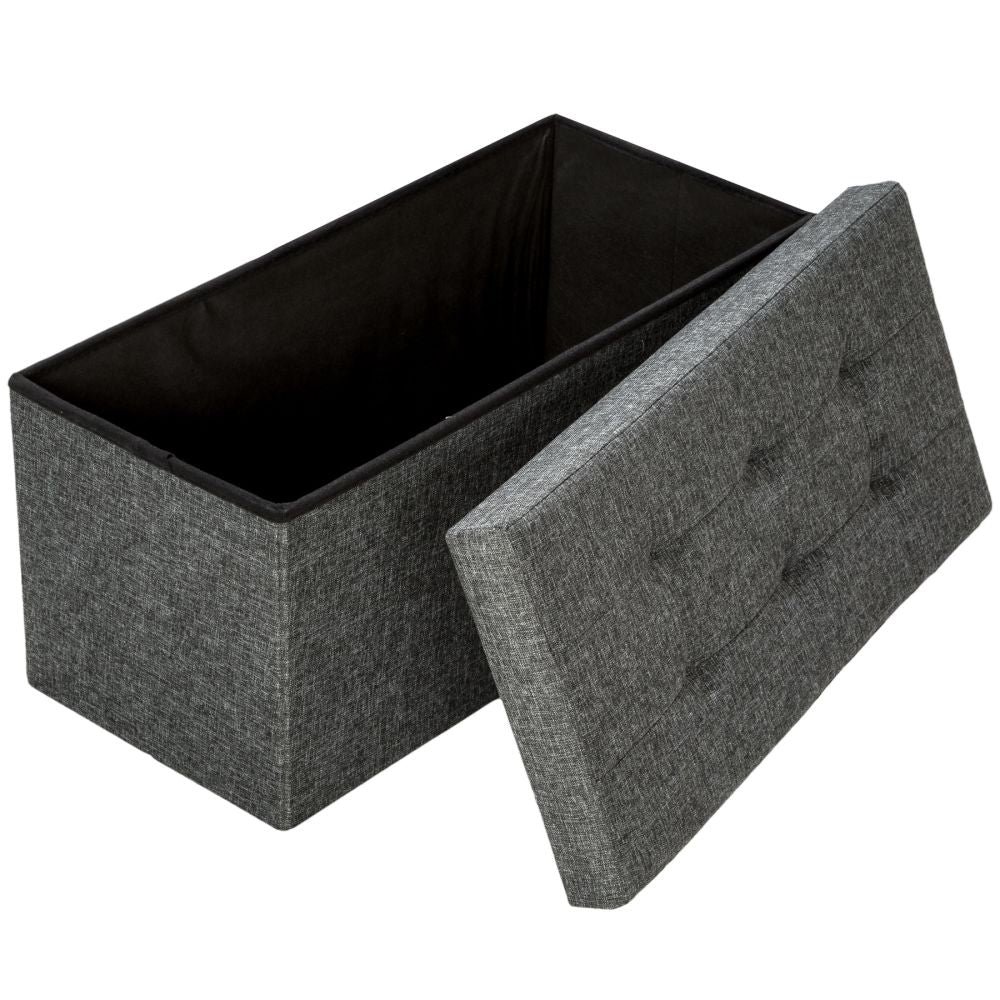 Pouf coffre de rangement pliable grand format tissu gris foncé 1208014