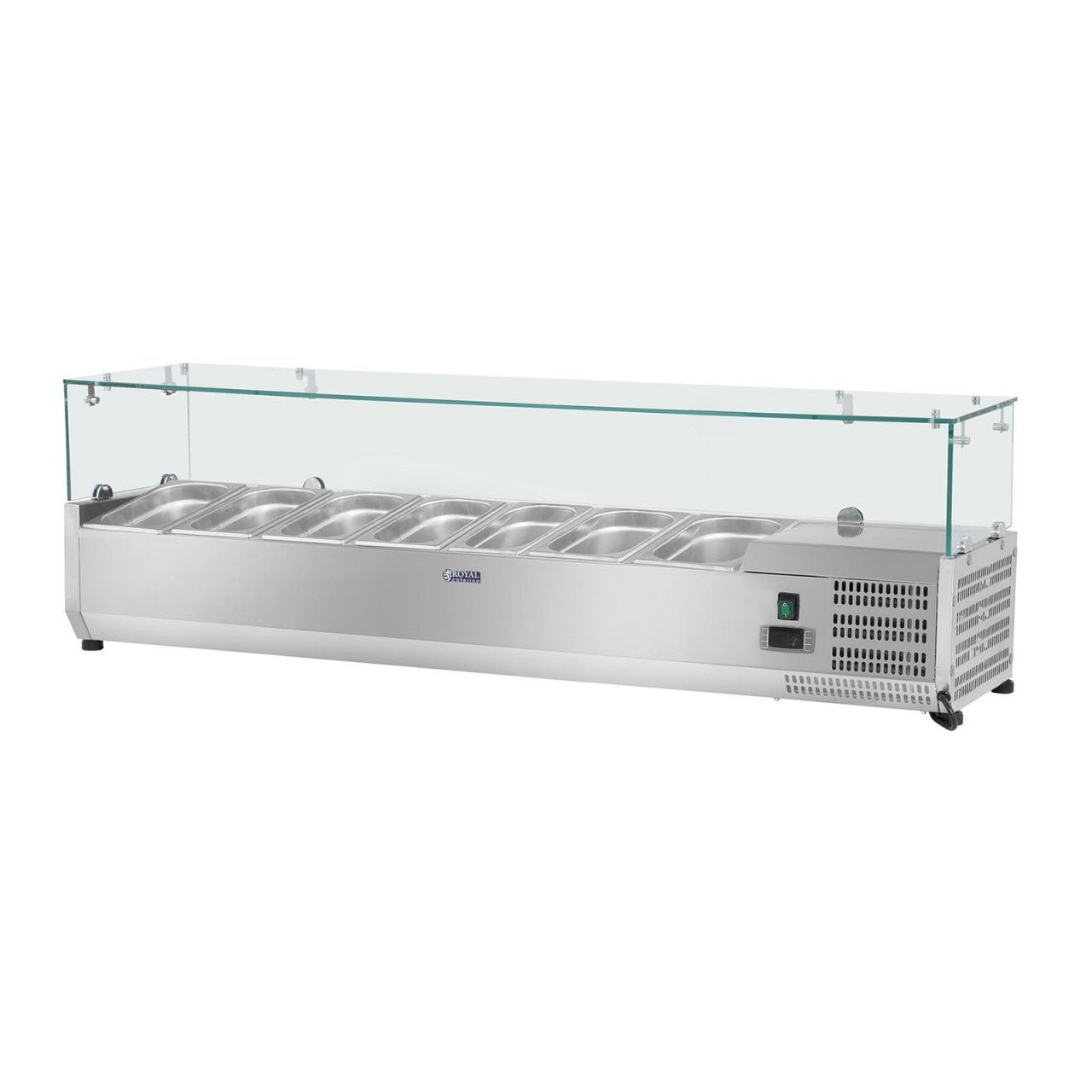Saladette à poser table comptoir acier inoxydable 160 x 33 cm 8 bacs GN 1/4 couvercle en verre 14_0003296
