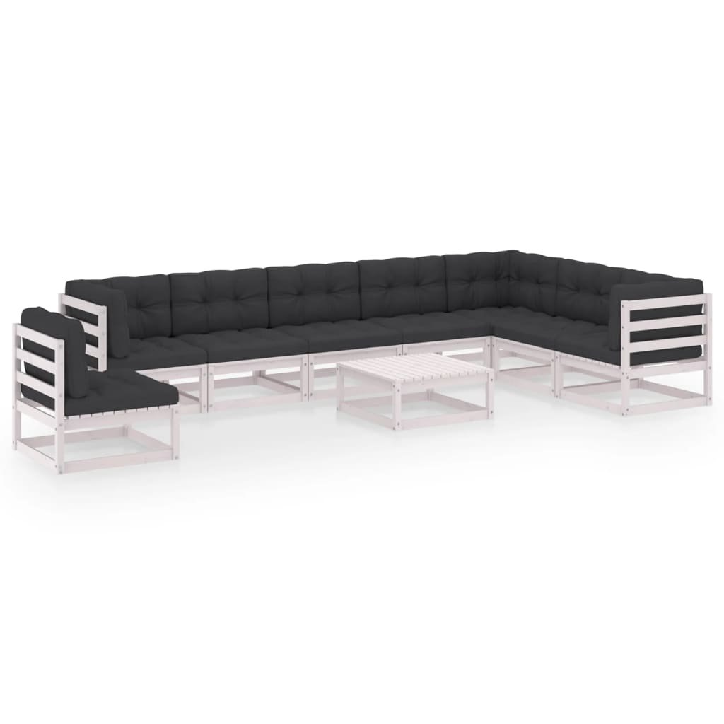 Salon de jardin meuble d’extérieur ensemble de mobilier 9 pièces avec coussins blanc bois de pin massif 02_0017901