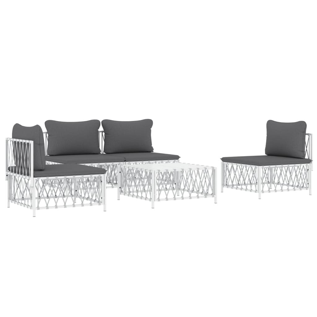 Salon de jardin meuble d’extérieur ensemble de mobilier avec coussins 5 pièces blanc acier 02_0018305