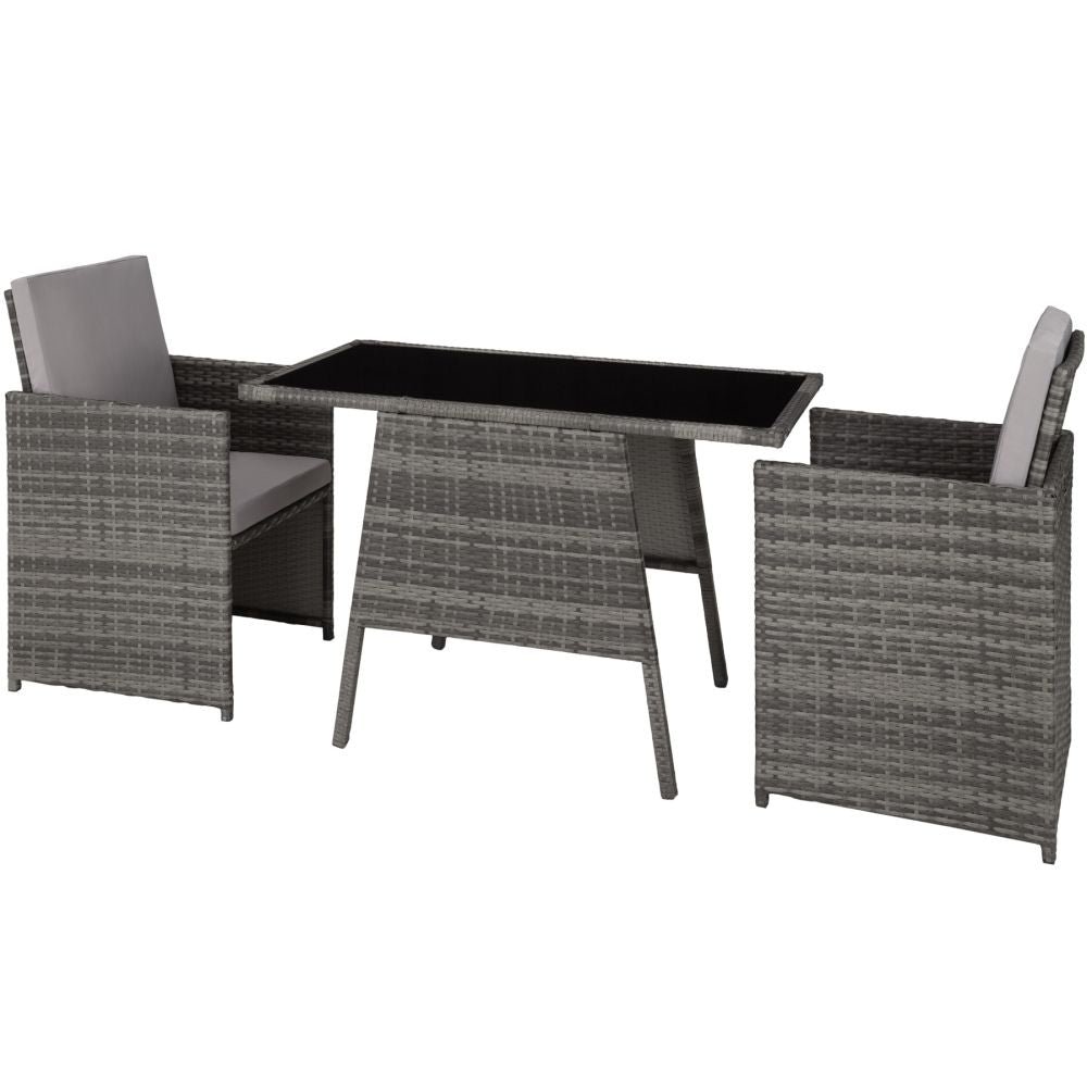Salon de jardin rotin résine tressé synthétique 2 places gris 2108061