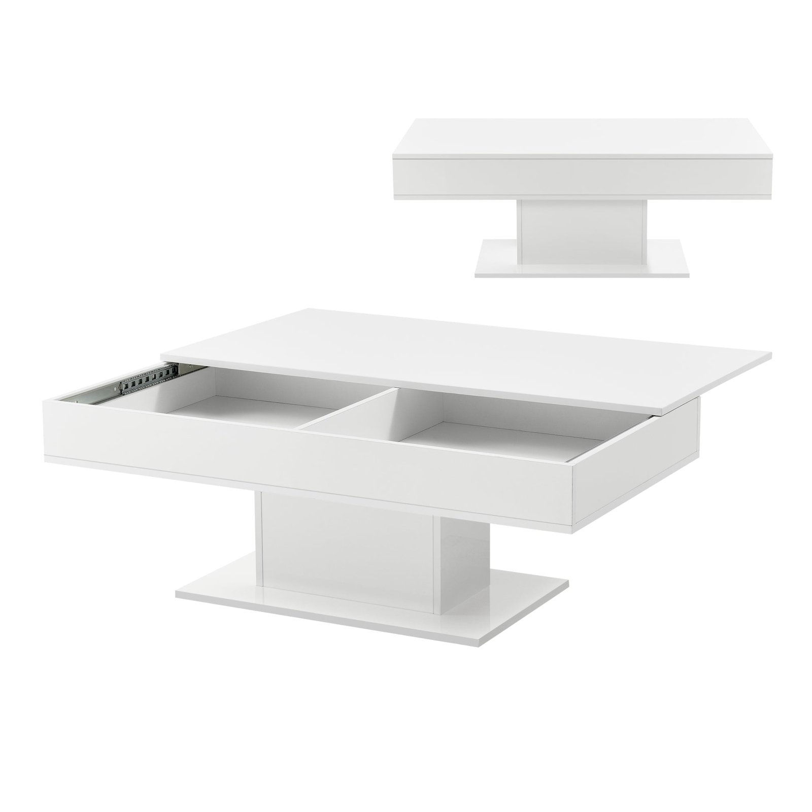Cette table basse se fait remarquer par son apparence stylée et intemporelle et peut devenir un vrai ornement de votre salon. Mais son plus grand atout reste sa fonctionnalité sans doute : en poussant le plateau, nous avons accès aux deux espaces de rangement qui se cachent sous le plateau.