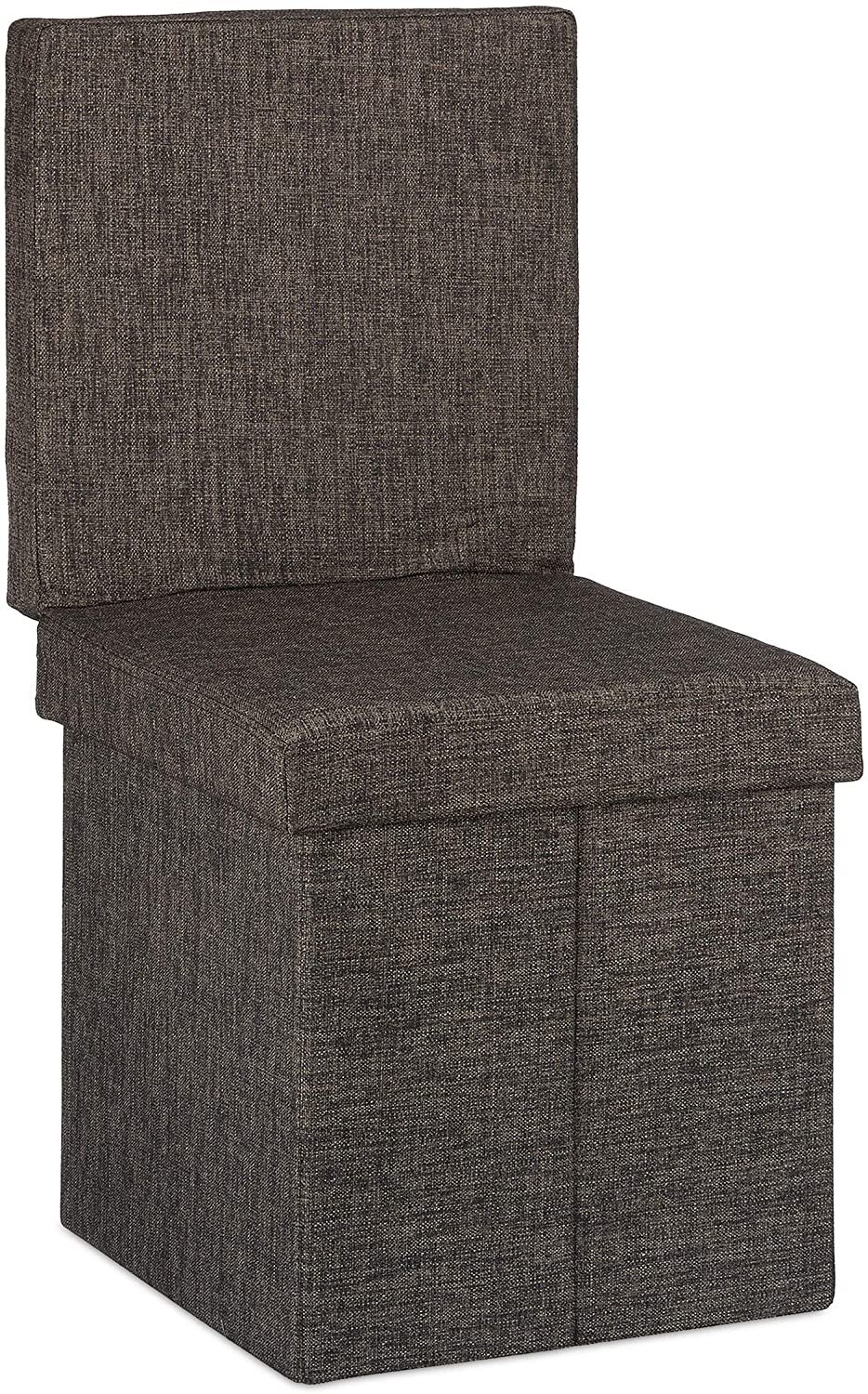 Tabouret coffre de rangement pliant avec appui dos en lin marron 13_0002778_2