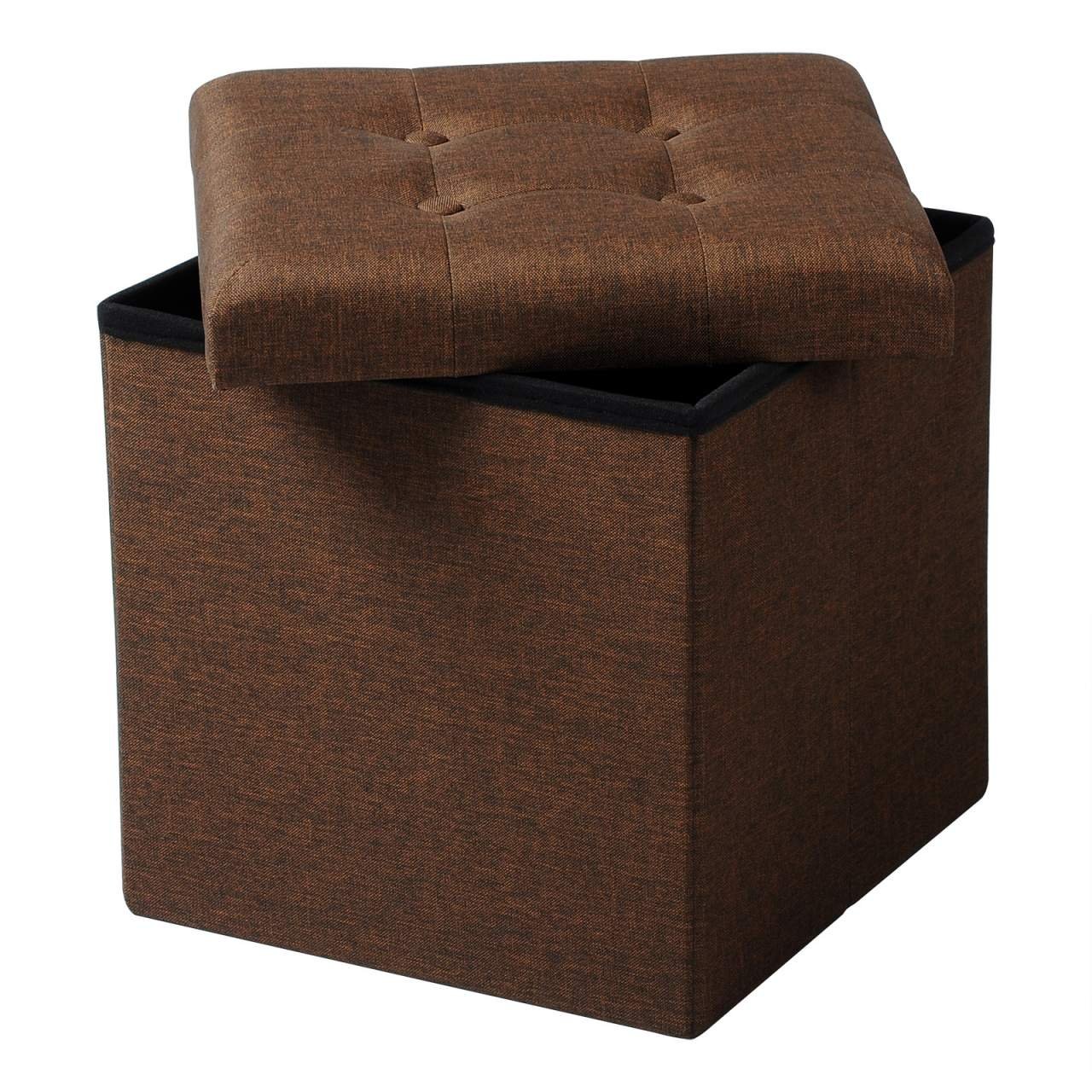Tabouret d’assise en lin avec espace de rangement marron 19_0000467