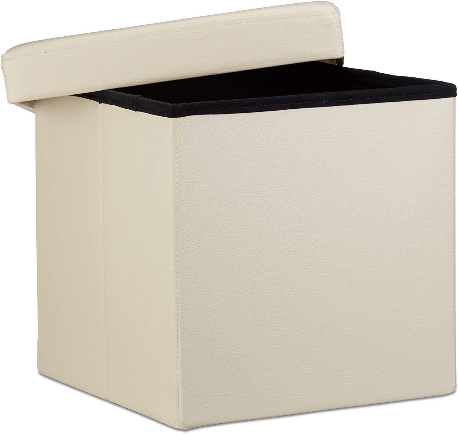 Tabouret pouf banquette pliant meuble de rangement stable synthétique 38 cm beige 13_0002806_4