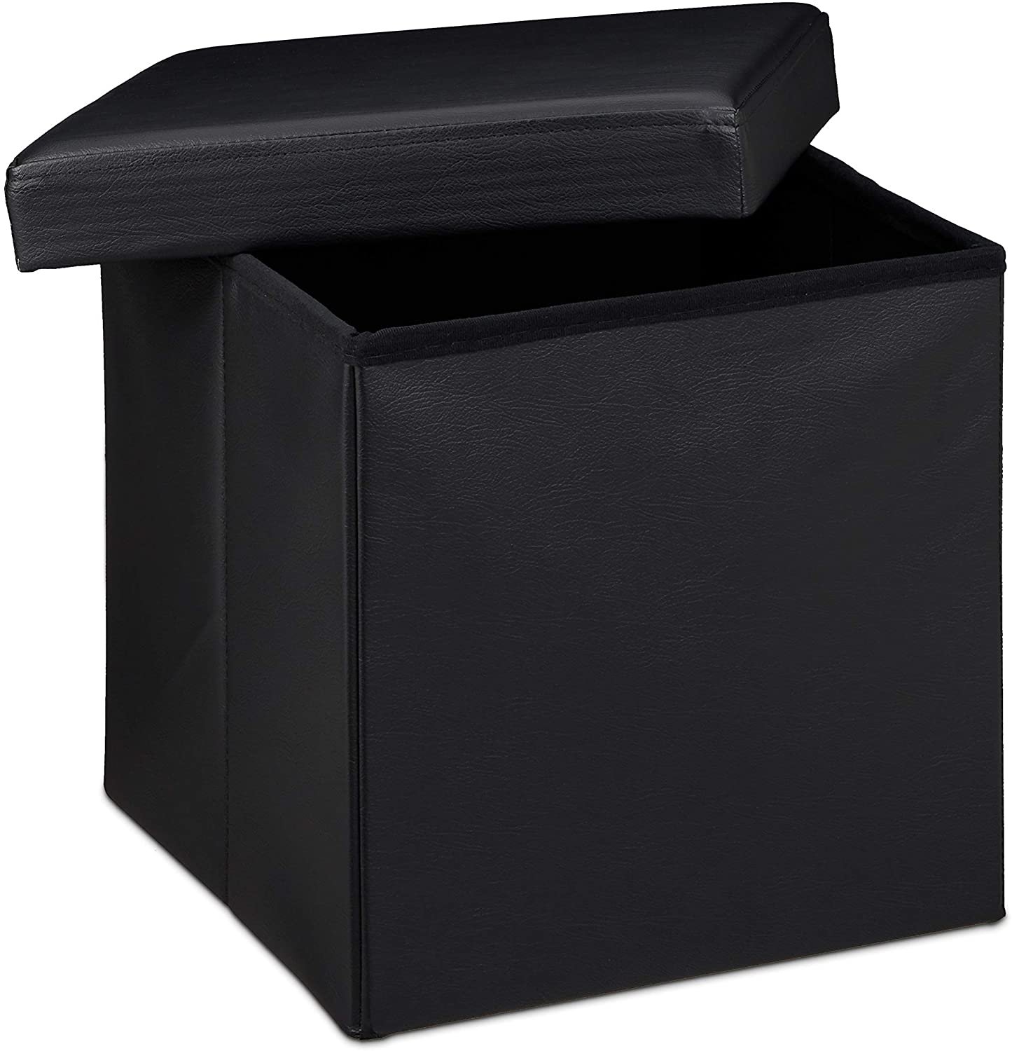 Tabouret pouf banquette pliant meuble de rangement stable synthétique 38 cm noir 13_0002806_3